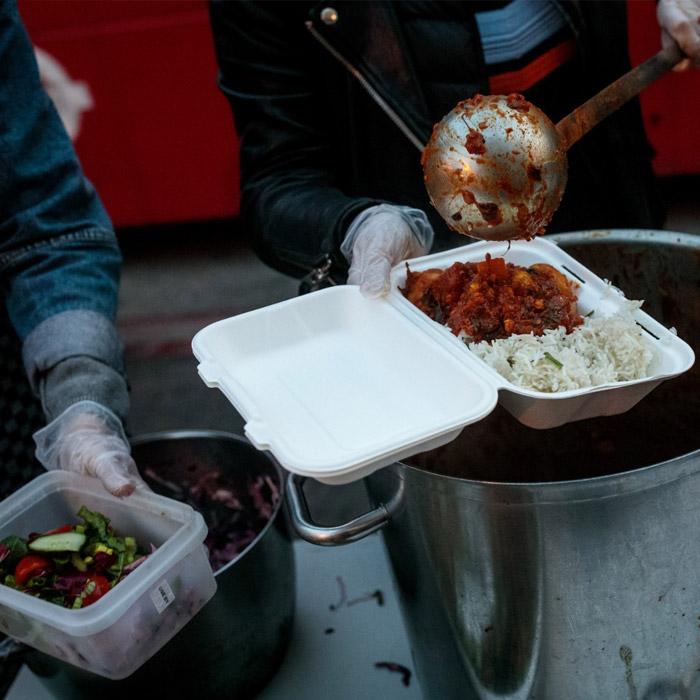 Despite the chaos and devastation of the COVID-19 crisis, Refugee Community Kitchen has continued to serve nourishing food to people in need at points throughout the UK. In London and Edinburgh we are carefully preparing and serving hot meals every week. We also provide food to vulnerable individuals, families, food banks and other food outreach projects. We are deeply committed to addressing food poverty in Northern France and the UK and continue to adapt our systems and procedures in order to best be of service moving forward. We need your support as more and more people feel the crushing impact of COVID-19. The demand for our food service continues to increase as the government scheme to put the homeless in hotels has ended and more people lose their incomes.