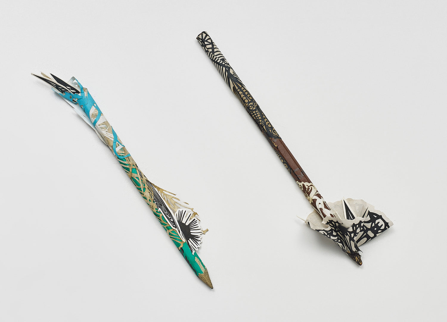 paper collage and pen on coloured pencil and paper collage on graphite pencil, in two parts