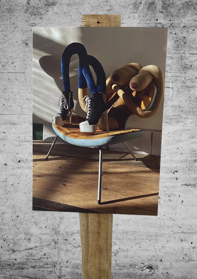 Sarah Lucas is one of the most influential British artists of the past 30 years. She is part of the generation of Young British Artists who emerged during the 1990s. Her works frequently employ visual puns and bawdy humour by incorporating photography, collage and found objects.